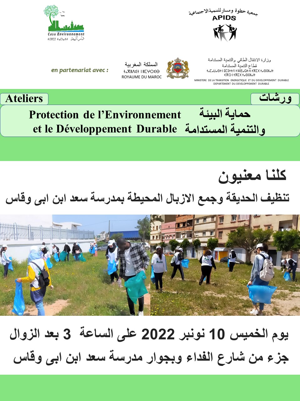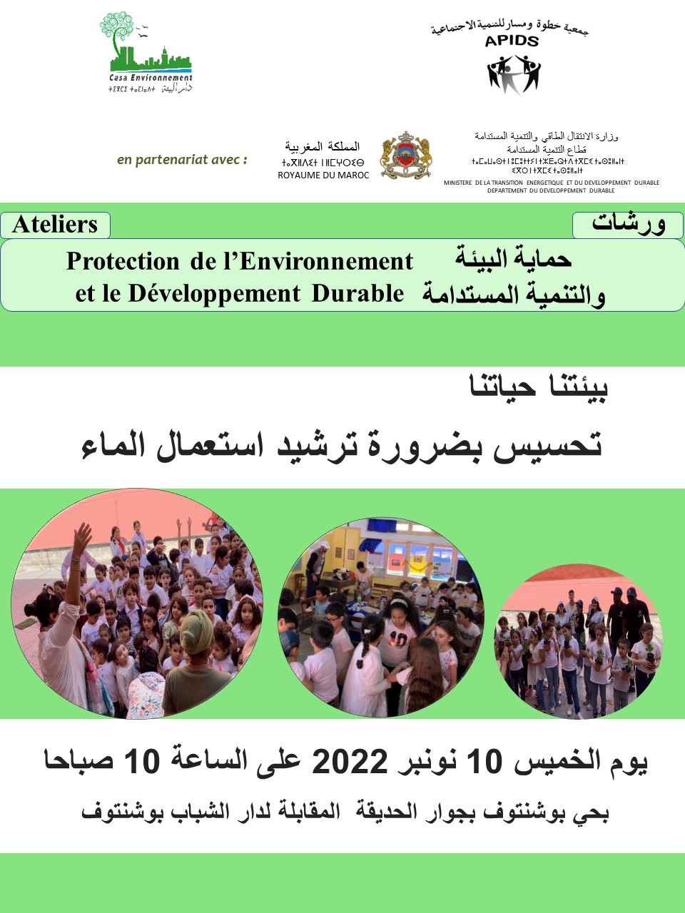Ateliers Protection de l’Environnement et le Développement Durable, du 07 au 13 novembre 2022